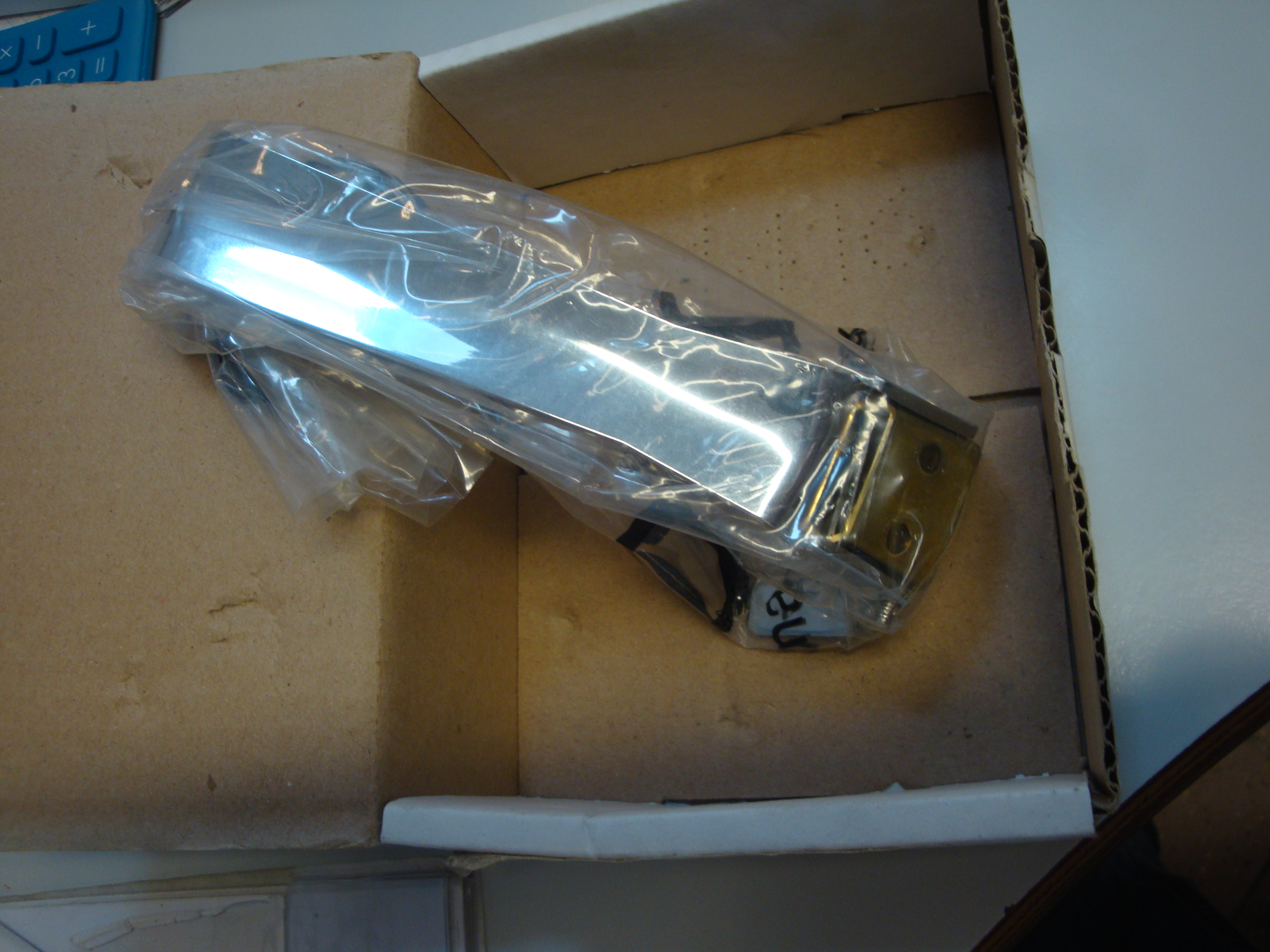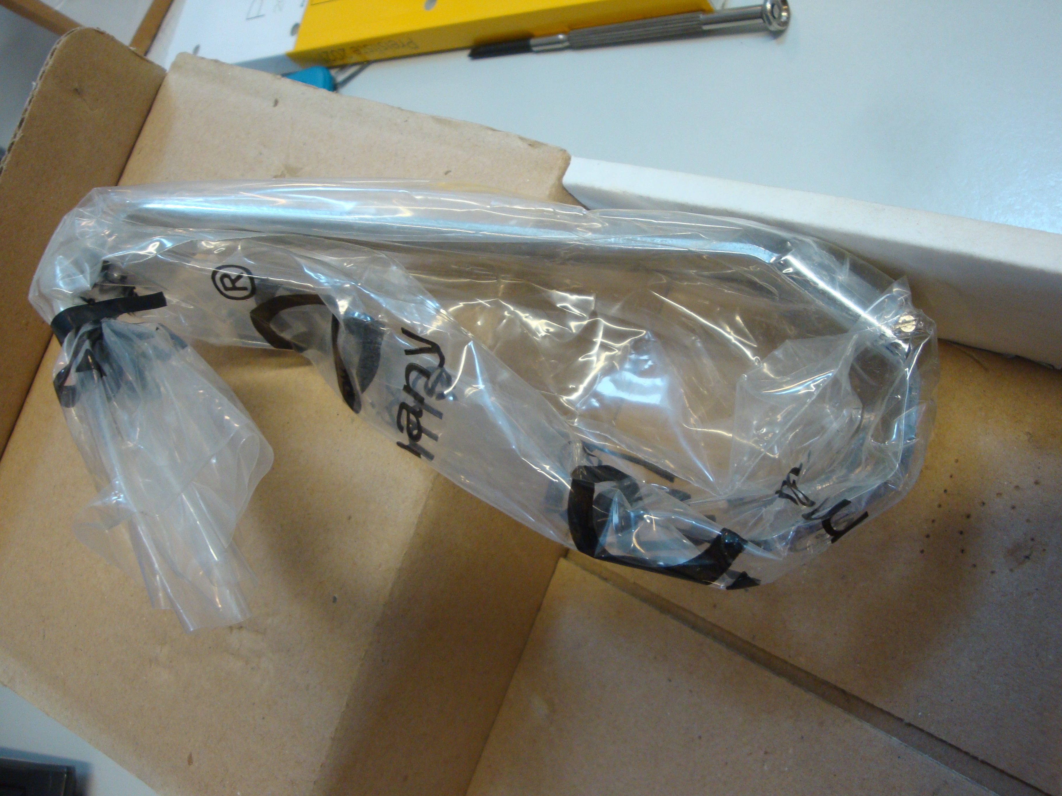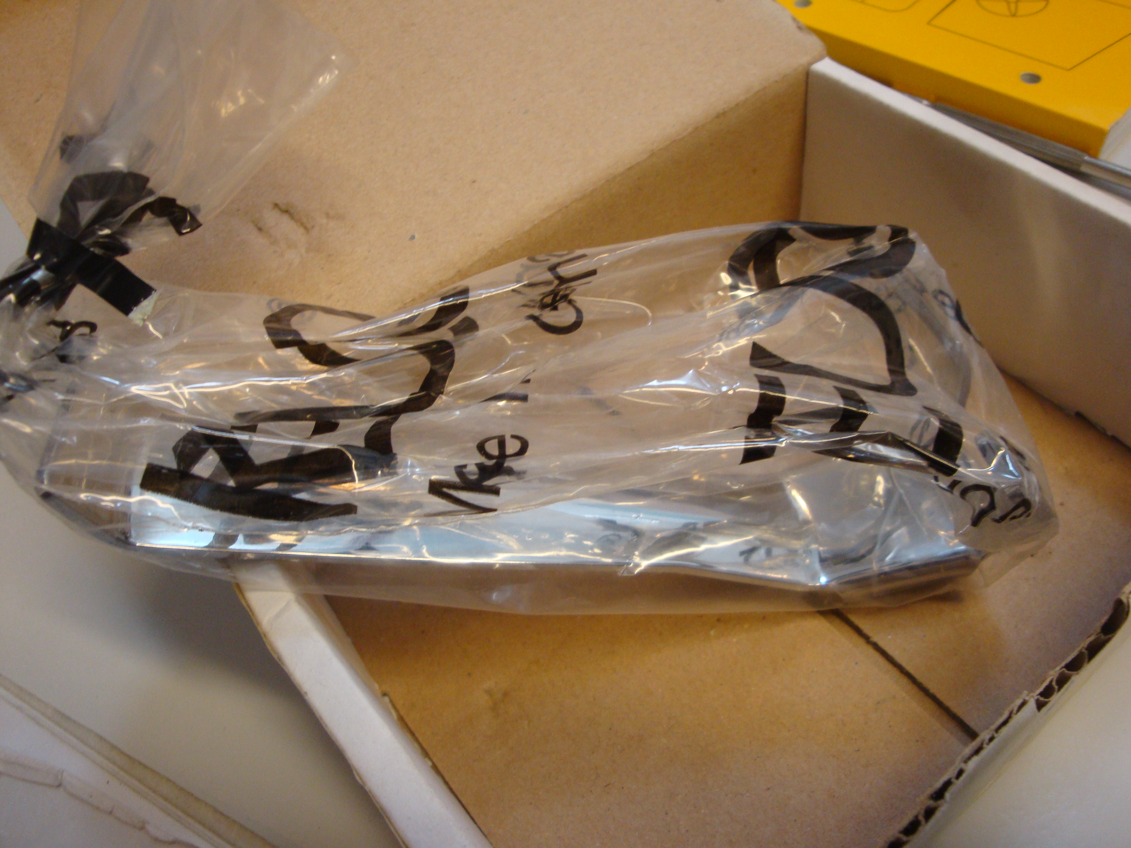 Der Haken ist in der Tüte versiegelt. Kartonage hat Lagerspuren.
